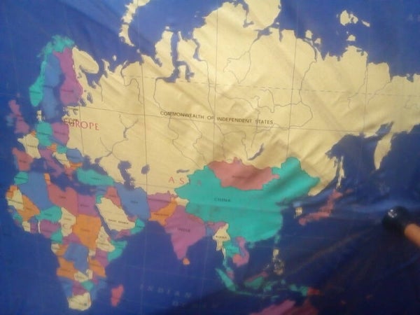 Paraplu - blauw met kaart van de wereld