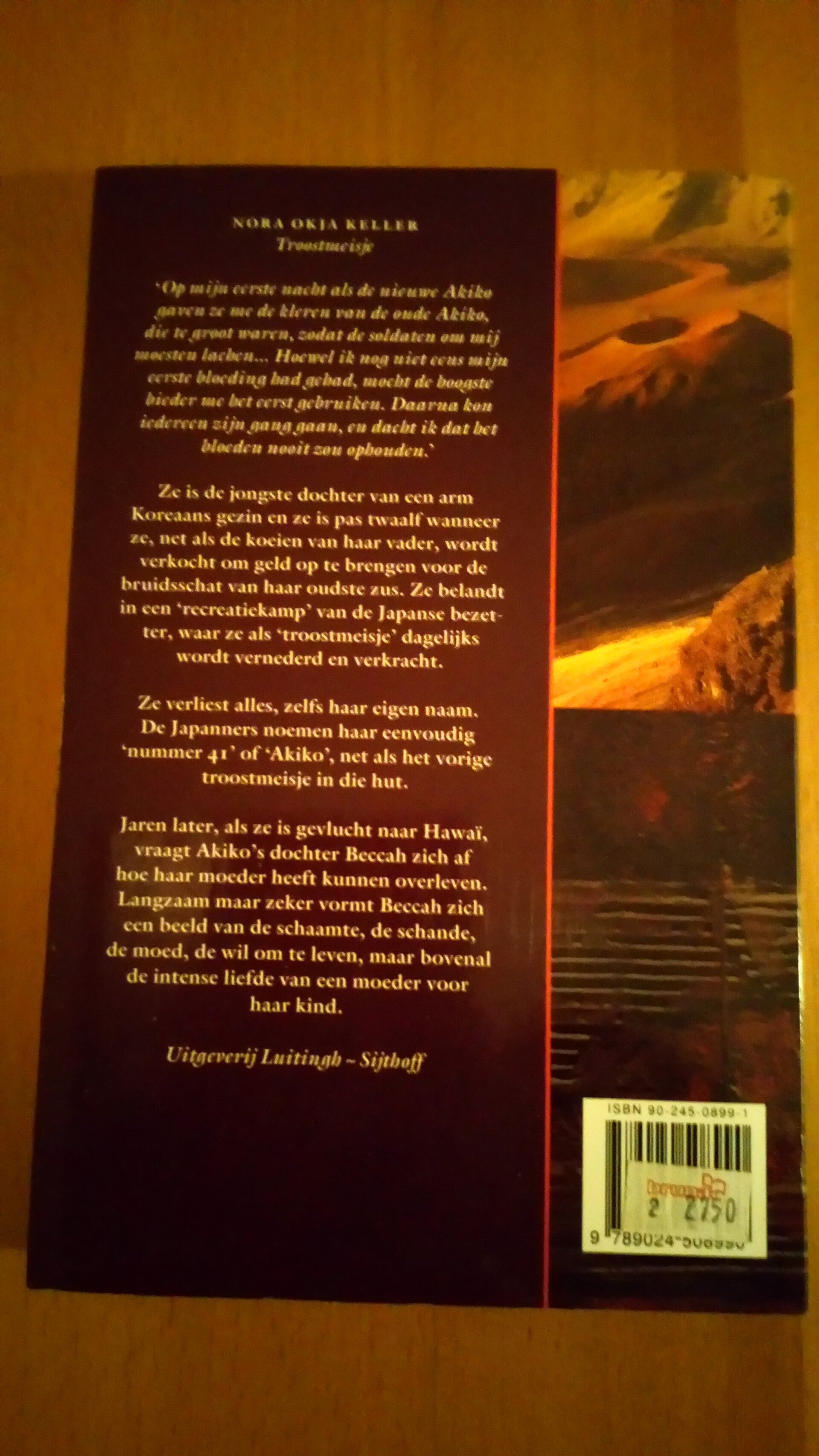 Ze is de jongste dochter van een arm Koreaans gezin en ze is pas twaalf jaar wanneer ze, net als de koeien van haar vader, wordt verkocht om geld op te brengen voor de bruidschat van haar oudste zus. Ze belandt in een `recreatiekamp` van de Japanese bezetter, waar ze als troostmeisje dagelijks wordt vernederd en verkracht. Ze verliest alles, zelfs haar eigen naam. De Japanners noemen haar eenvoudig `nummer 41` of `Akiko`, net als het vorige troostmeisje in die hut. Jaren later, als ze is gevlucht naar Hawaï, vraagt Akiko's dochter Beccah zich af hoe haar moeder heeft kunnen overleven. Langzaam maar zeker vormt Beccah zich een beeld van de schaamte, de schande, de moed, de wil om te leven, maar bovenal de intense liefde van een moeder voor haar kind. - bron bol.com