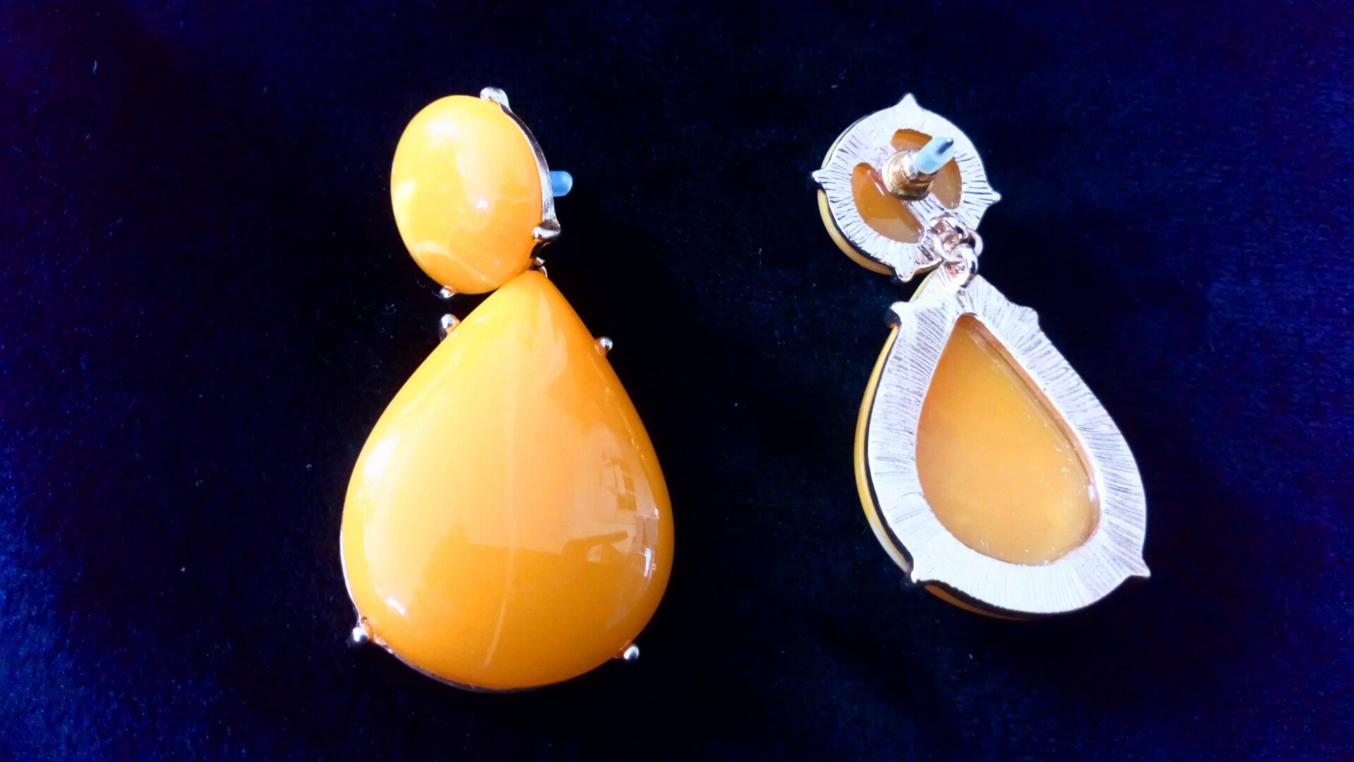 Oorbellen okergeel met stenen
