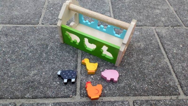 Houten bak met figuurtjes