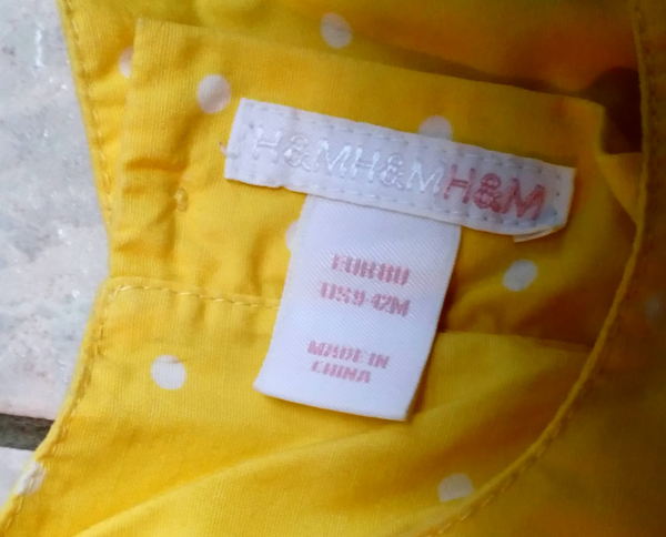 Jurk H&M geel-wit gestipt, maat 80